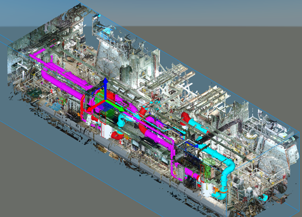 Our team has expertise to provide services for large scale scanning such as ship building, process industry, steel plants, power plants, piping layouts, platforms, oil rigs, civil engineering, digital factories, and much more. We use 3D Scanning Technology to obtain Point Cloud data. The three dimensional Point Cloud that is created can be navigated, drafted, and modeled in popular CAD and other applications.